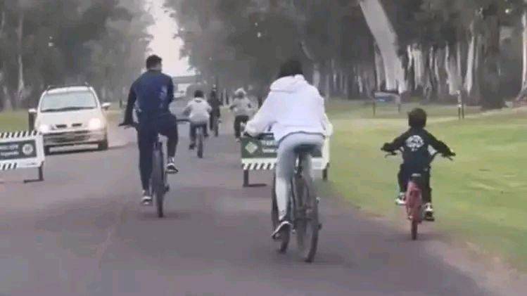 近日有网友在路边偶遇梅西和安东内拉带着孩子们骑自行车,开启了放假遛娃形式。一家五东谈主五辆单车,三个女儿中,苍老老二在前边奔突,梅西居中,安东内拉随后,唯一老三西罗慢悠悠地拖在终末。