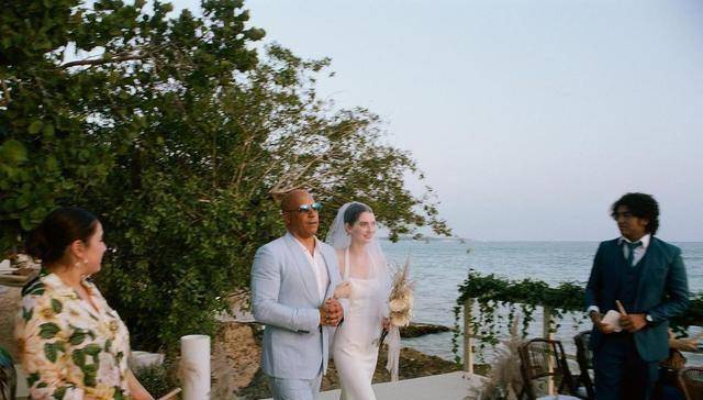 婚典现场,梅朵沃克依偎在“教父”范迪塞尔身上,笑脸甘好意思幸福飘溢,可见二东谈主联系十分亲密。范迪塞尔莫得亏负与保罗沃克的这段友谊,一直珍视梅朵沃克成长,并护着她参加婚配的殿堂。