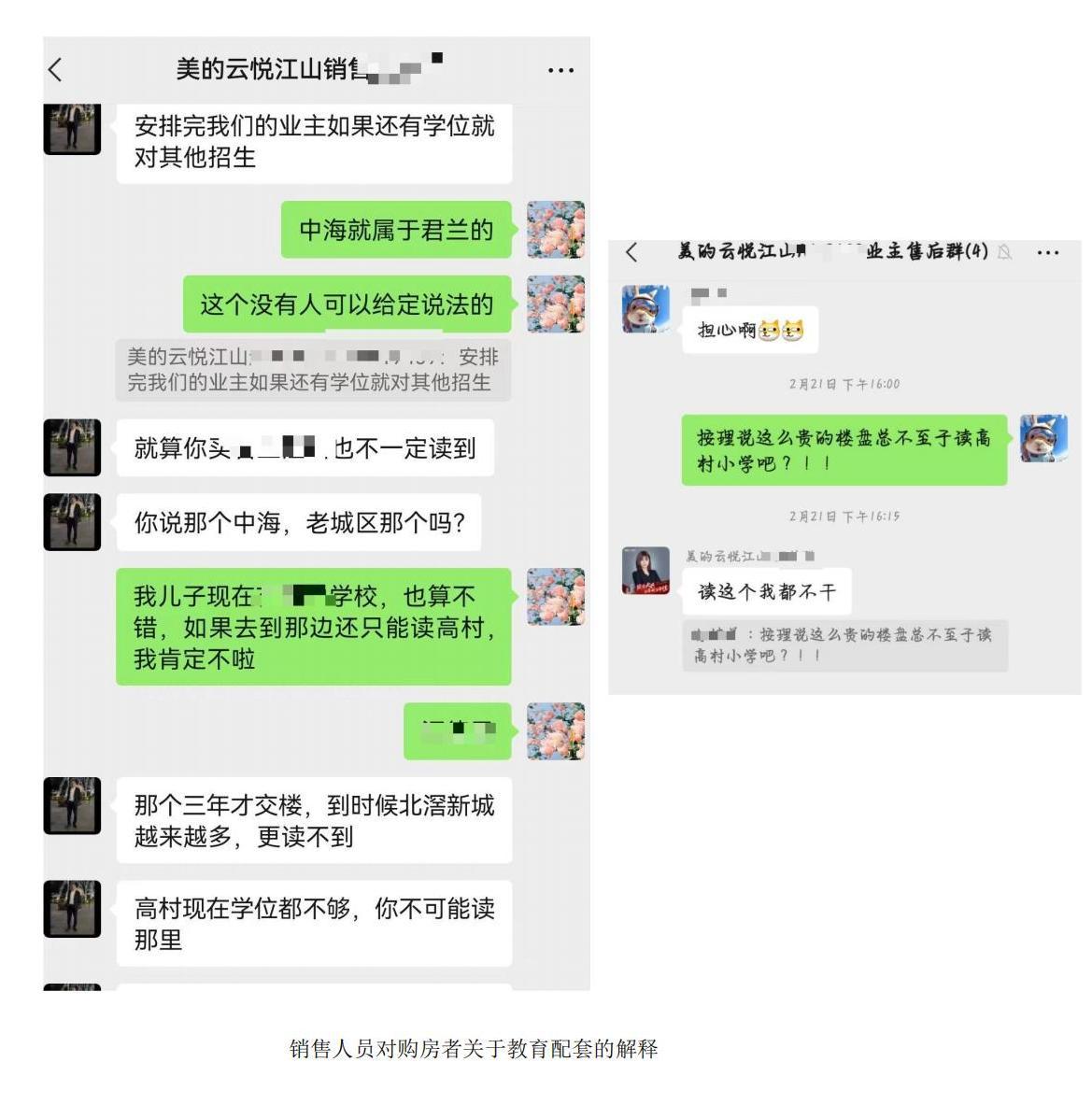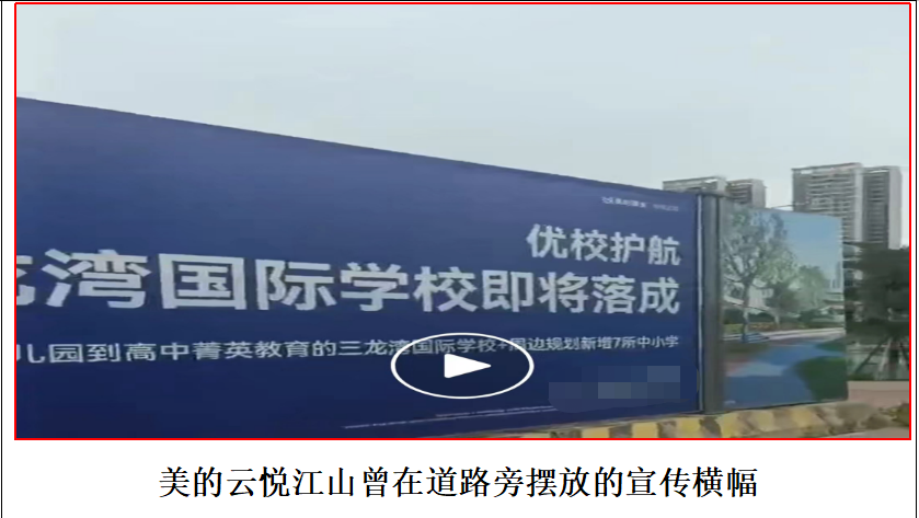 据苏女士先容,该款式最蛊惑她的是教训配套。其时好意思的云悦山河微信公众号上多篇著述齐重心说起了这少许,如“好意思的云悦山河款式配建约1.9万日常米海外培训机构,距华南师范大学附庸北滘学校约300米,承德小学、北滘中心小学、君兰中学等9所学府环伺周围,教训资源号称首屈一指”;官方抖音号上也屡次说起“华师附小”“育贤幼儿园”等教训配套;以致在北滘好意思的大路两旁均粘贴了多数的横幅告白,宣传口号径直是:“好意思的云悦山河优校护航,7所优质中小学”“步行上华附”。
