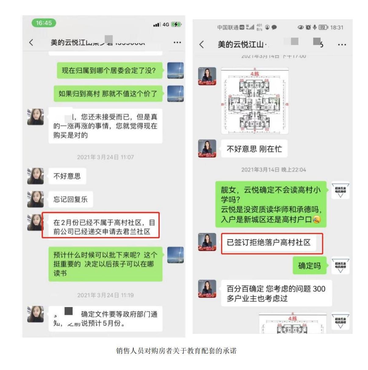 苏女士与在此买楼更早的一期业主陈女士、梁先生等均认为,开发商较着在骗他们。2021年3月前后,一期业主购房前就问过销售东谈主员是否会落户高村,其时销售东谈主员默示“款式2月已不属于高村社区,正在递交央求去君兰社区,瞻望5月会有陈说”,还有销售东谈主员曾向业主默示“款式将自强新社区或直遴荐入君兰社区”。但最终比及的却是落户到高村村委。